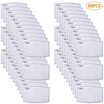 60 pièces PM2.5 papier filtre Anti brume masque de bouche filtres remplaçables 5 couches filtre à charbon actif masques de soin